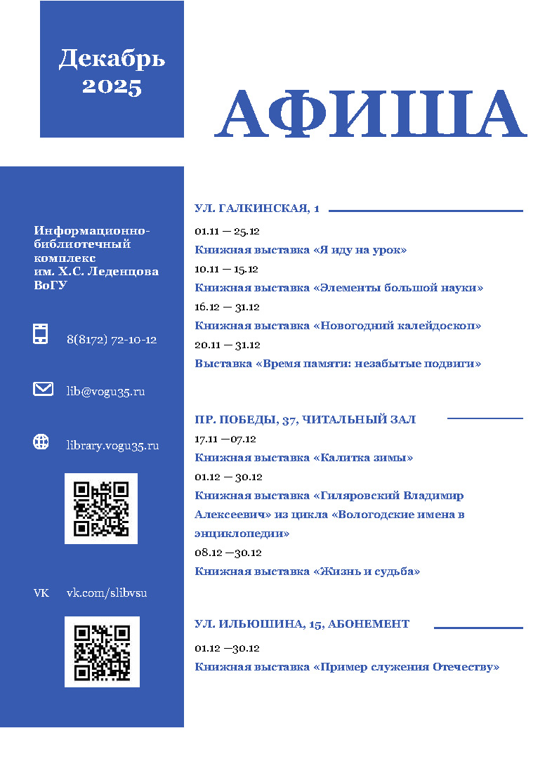 В рамках мероприятий Первого Леденцовского форума «Служение Отечеству, людям, науке» Всероссийской научно-практической конференции с международным участием «На благо человечества», посвященной историко-научному наследию Христофора Семеновича Леденцова, в Информационно-библиотечном комплексе ВоГУ, носящем имя выдающегося мецената и общественного деятеля, развернута экспозиция «Я вернулся в свой город…».
